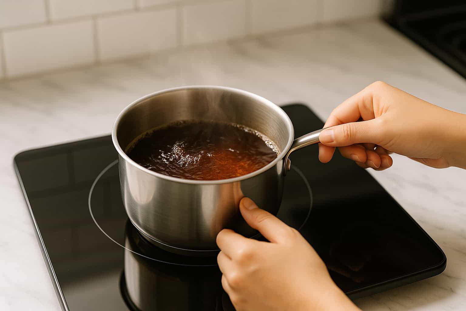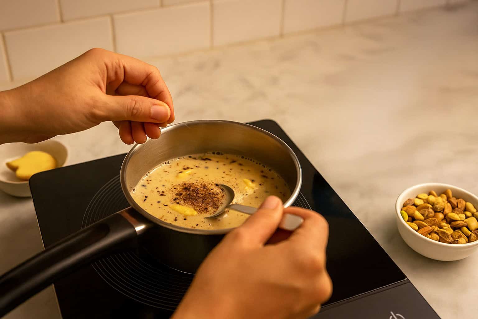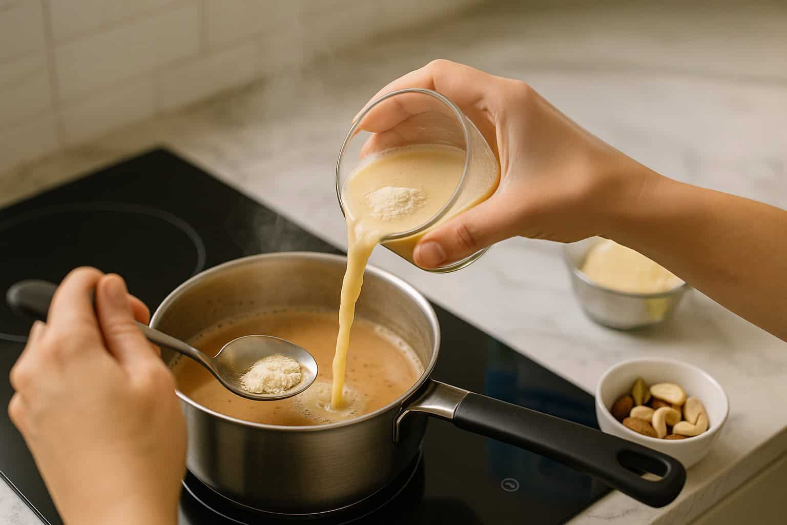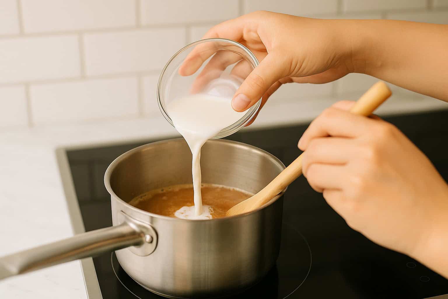 Stir the milk slurry to clear off any lumps and add mixture back into the pot.