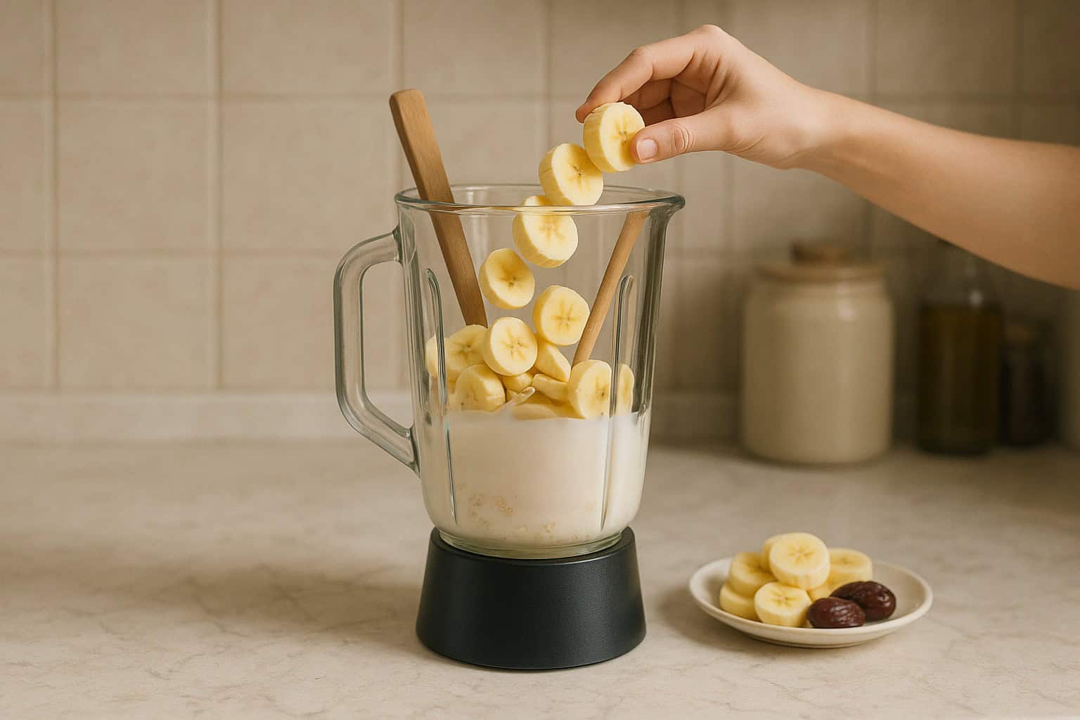 In a blender, combine the Dutch Lady Kurma Flavoured Milk and the other ingredients.