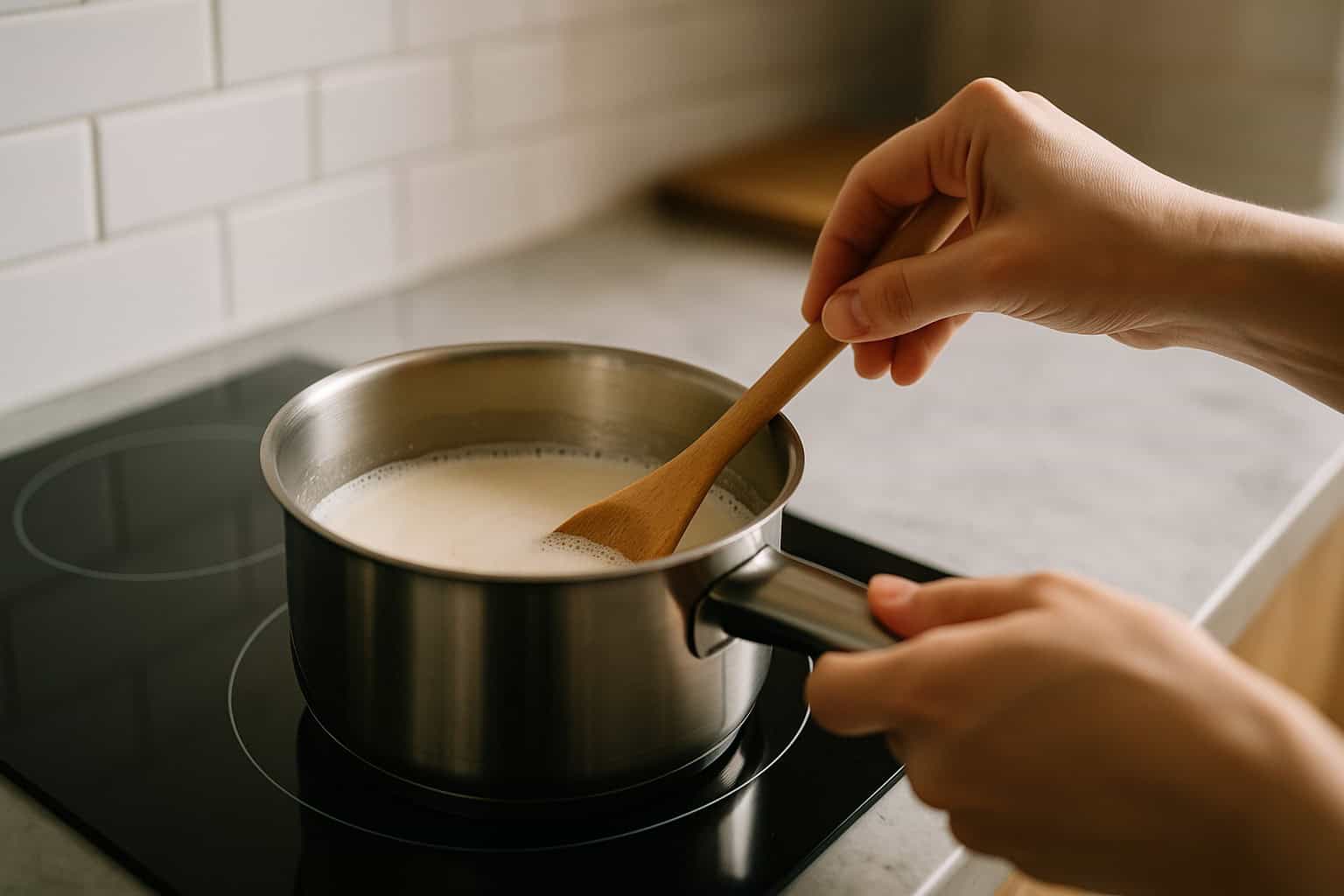 Stir sugar, cream, and Dutch Lady Milk in a saucepan over low heat until sugar has dissolved and a small ring of foam appears around the edge.