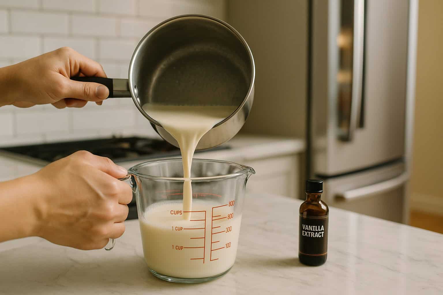 Transfer cream mixture into a pourable container such as a large measuring cup. Stir in vanilla extract and chill in the refrigerator for at least 2 hours, although overnight is best.